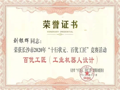 11月28日,長(zhǎng)沙市總工會(huì)在市會(huì)議中心召開(kāi)長(zhǎng)沙市2020年“十行狀元、百優(yōu)工匠”技能競(jìng)賽活動(dòng)總結(jié)表彰會(huì)。長(zhǎng)泰公司人工智能研究部莊海龍、智能裝備事業(yè)部劉銀輝組成的工業(yè)機(jī)器人設(shè)計(jì)小組被授予“百優(yōu)工匠”榮譽(yù)稱(chēng)號(hào)!