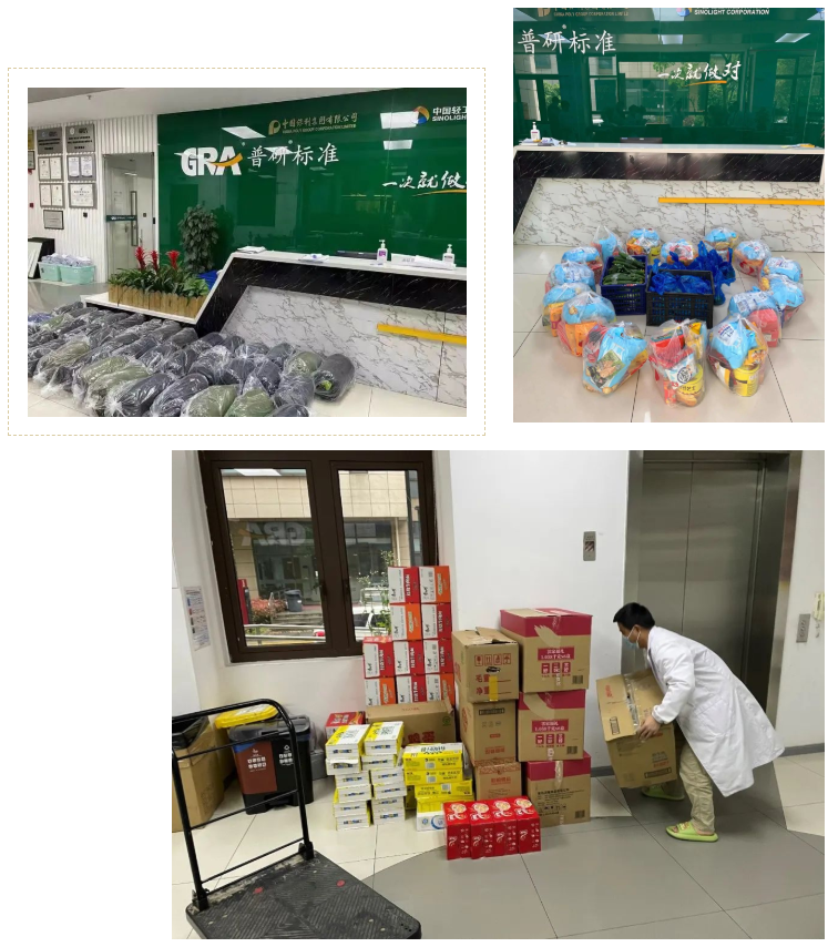 普研標(biāo)準(zhǔn)也積極做好充足的物資儲(chǔ)備,為堅(jiān)守一線的38位“防疫勇士”準(zhǔn)備一日三餐,提供牛奶、雞蛋等富含營養(yǎng)的食品,并備足拖鞋、毛巾等生活類物資。除了密切關(guān)注全體員工的身體狀況以外,公司積極了解大家的困難需求,為居家辦公的同事們共發(fā)放368份由蔬菜、水果、肉類等組成的“愛心大禮包”。