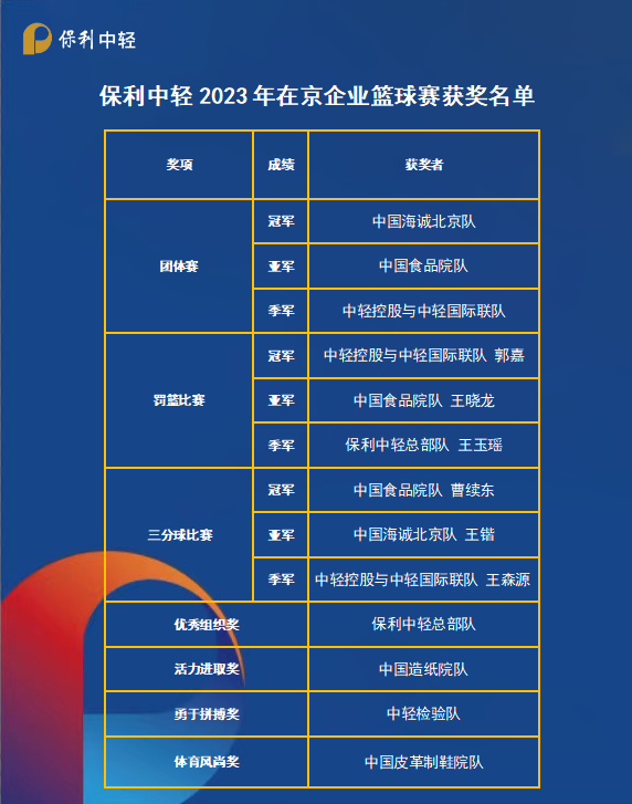 參賽7支代表隊分別來自保利中輕總部、中國制漿造紙研究院、中國食品發(fā)酵工業(yè)研究院、中國皮革制鞋研究院、中輕檢驗、中輕控股、中輕國際、中國海誠北京公司、中國海誠中輕建設(shè)9家在京企業(yè),70余名運動員、教練員參加比賽。