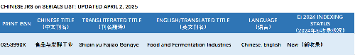 4月7日,保利中輕所屬中國食品發(fā)酵工業(yè)研究院(簡稱“中國食品院”)主辦的學(xué)術(shù)期刊《食品與發(fā)酵工業(yè)》成功入選國際數(shù)據(jù)庫《工程索引》(EI Compendex),成為全球被收錄的79種食品科學(xué)類期刊之一。這是《食品與發(fā)酵工業(yè)》發(fā)展歷程中又一重要里程碑,標(biāo)志著該期刊學(xué)術(shù)價(jià)值、研究質(zhì)量及國際化水平獲得國際權(quán)威機(jī)構(gòu)的高度認(rèn)可與肯定,彰顯中國食品院科技期刊學(xué)術(shù)引領(lǐng)力和國際影響力得到極大提升。