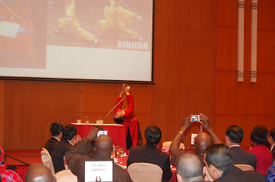 聯(lián)歡會上,由中食院工會牽頭組織的來自院科技發(fā)展部、物業(yè)部、財務(wù)部和食品、發(fā)酵、國際合作等各部門工作人員表演的扇子舞及變臉、茶藝、抖空竹等節(jié)目精彩紛呈,博得了全場觀眾的陣陣掌聲。學(xué)員們也通過自編自演的節(jié)目表達(dá)了對主辦單位、承辦單位的感激之情和中國人民的深厚情誼。商務(wù)部、集團(tuán)公司和院領(lǐng)導(dǎo)主持的現(xiàn)場抽獎活動將晚會推向高潮,2個小時的晚會在熱烈友好的氣氛中圓滿結(jié)束。
