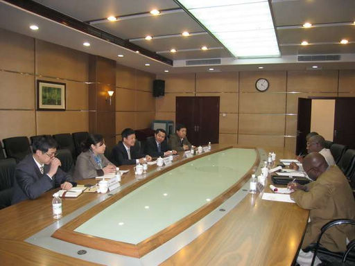 應中輕對外公司邀請, 馬里尼辦總裁噶蘇姆•德農(nóng)先生攜下屬農(nóng)村發(fā)展支持處處長里阿斯•多果魯•果或先生及尼辦土地和地籍事務部負責人塞杜•當貝雷先生一行3人于2011年2月26日至3月7日期間來華訪問。期間,尼辦總裁一行于2月28日下午正式訪問了中輕公司。集團公司總經(jīng)理俞海星、集團公司總會計師兼糖聯(lián)及新糖聯(lián)董事長郭建全以及中輕對外公司副總經(jīng)理王向陽會見了馬里尼辦總裁一行。