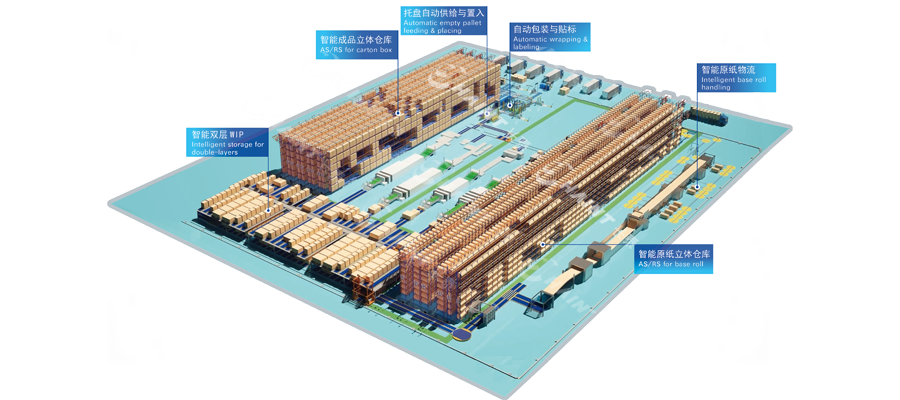 長(zhǎng)泰提供全面的一站式物流系統(tǒng)解決方案,從全自動(dòng)的原紙卷處理到智能化紙板物流(WIP),再到紙箱成品的自動(dòng)碼垛、包裝和倉(cāng)儲(chǔ),全過程處理自動(dòng)化、信息透明化,大大提高了紙箱印刷工廠的生產(chǎn)能力和生產(chǎn)效率。